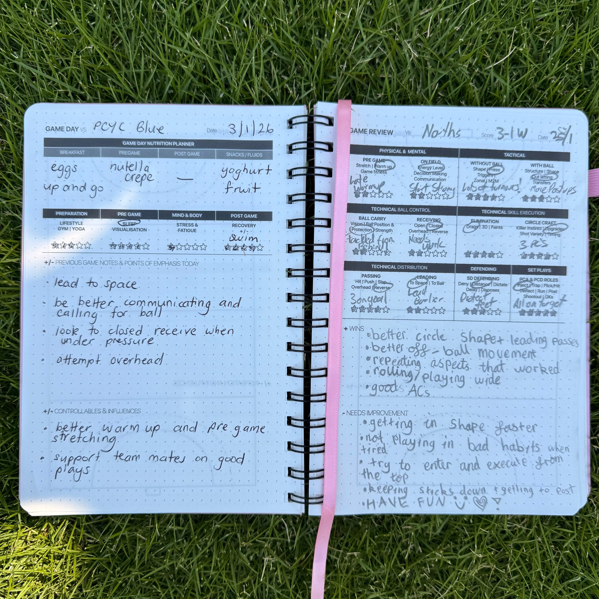 Designed by Australian International Hockey Coach Daniel Goodwin the journal is a comprehensive tool for athletes to track their technical and tactical skills, mindset, and overall development. By identifying patterns through consistent tracking, you can accelerate your growth and embrace the true process of mastery.
